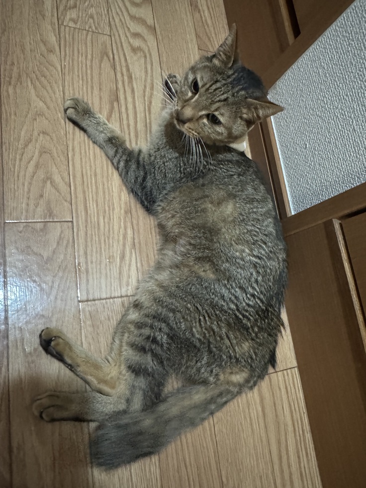 今日は少しだけにゃあにゃあとないてくれました!あと、わたしの膝の上にも来て甘えてくれました!