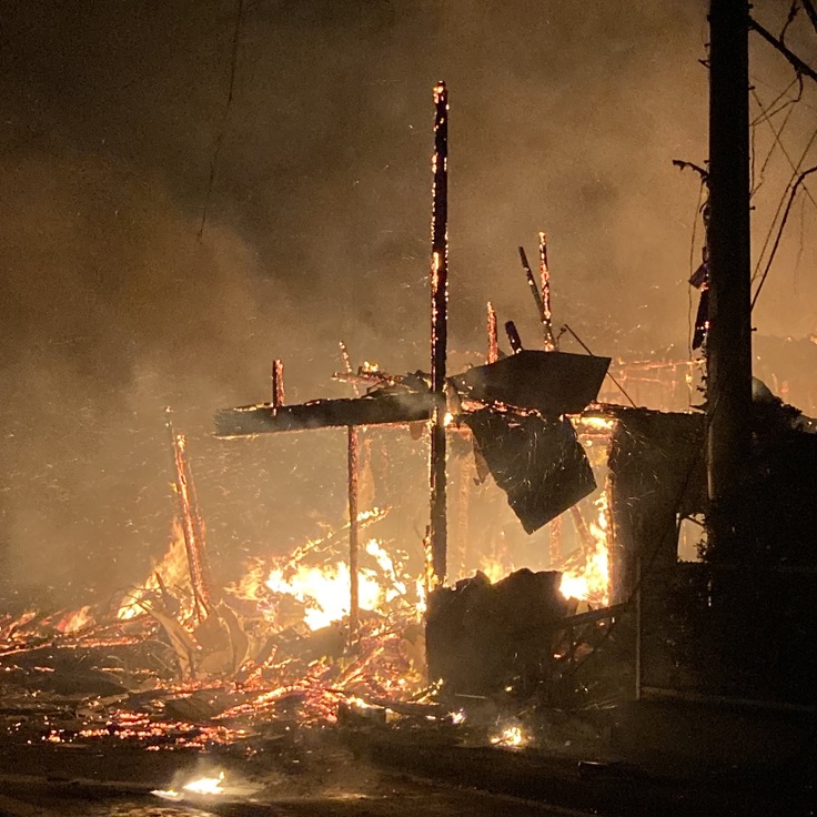 2021年11月11日 近くの民家での漏電と類を見ない強風が重なり、当店のある重寺地区は大きな火災にみまわれました。