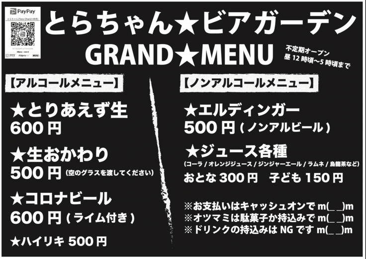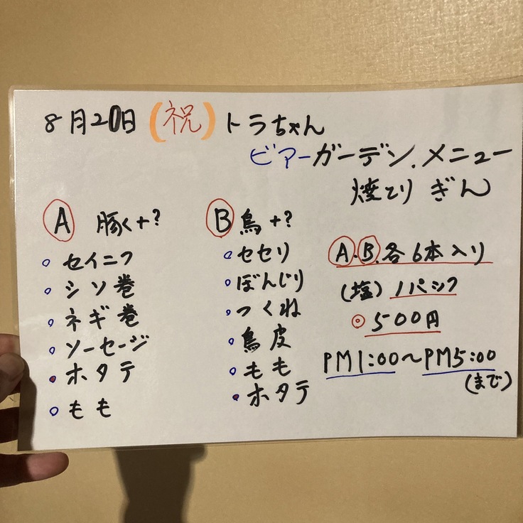 そして近所の焼き鳥屋さんがビアガーデン開催を祝して特別メニューも作ってくれました。