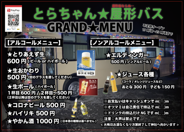まだ本営業といきませんが差し当たり露店形式の屋形船ならぬ「屋形バス」として臨時営業させて頂くことに!