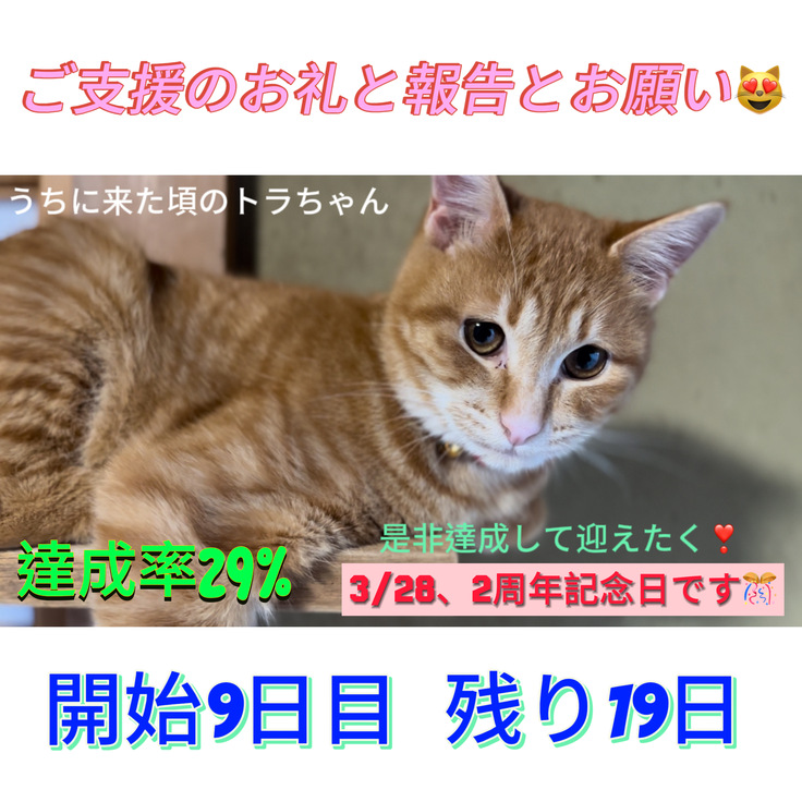 どうか皆様の温かいご支援で🙇♂️この日を目標達成と共に迎えさせて頂くことができましたら、トラちゃんにとって最高の日になること間違いありません😻