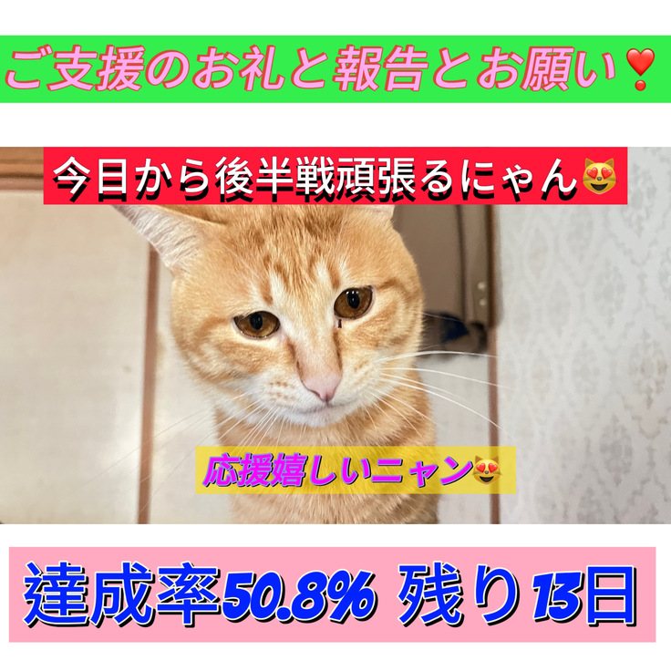 このまま皆様のお力を支えに、目標達成まで頑張りますので、引き続きお力添えのほどよろしくお願い致します🙇♂️😻🙇