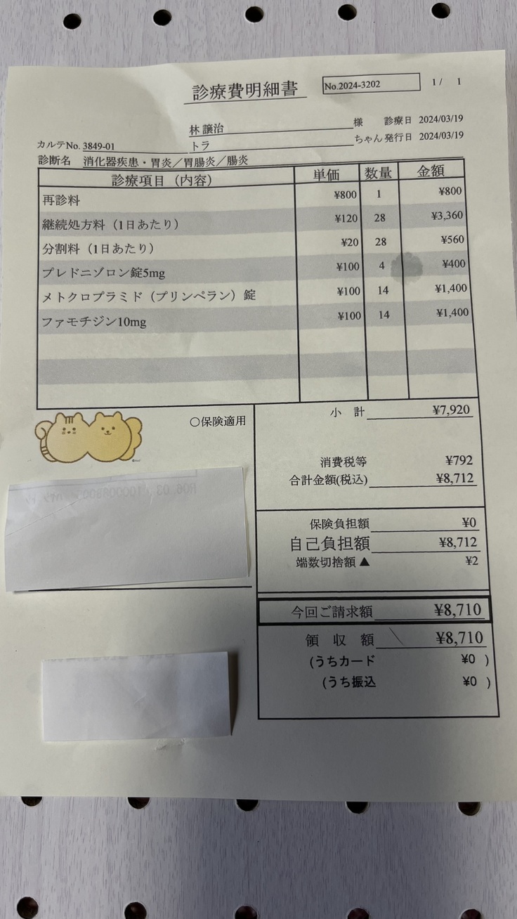 トラちゃんは2/19に炎症性腸疾患(IBD)の確定診断が出て、その日からプレドニゾロン(ステロイド薬)が処方され治療が開始できました。