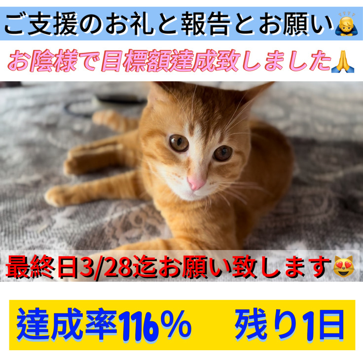 皆様のお陰様で当初の目標額は達成できました🙏毎日のご支援や拡散のご協力など本当にありがとうございます🙇♂️😻🙇