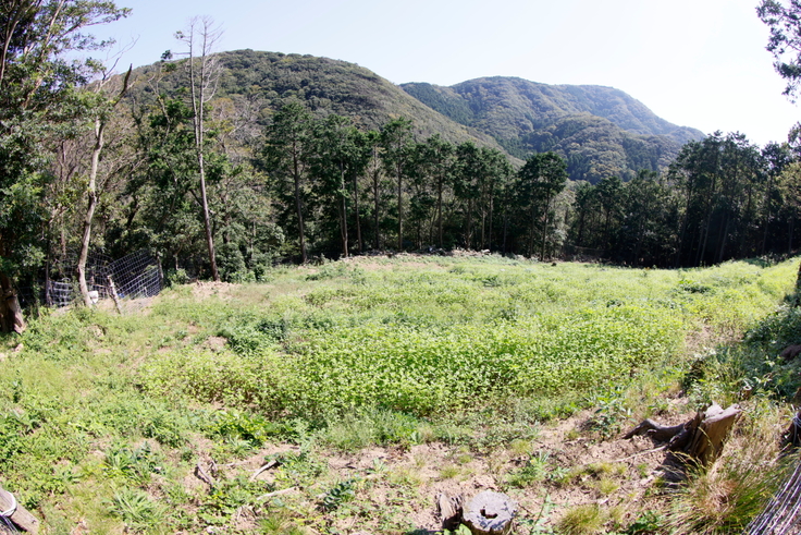 畑の周りにはメッシュワイヤーを張り、ヤマネコは入れますが、イノシシ・シカが入れないようにしています。