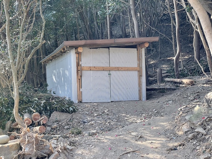 作業用の資材を雨ざらしさせておく訳にもいかないので、資材置き場の小屋を建てました。