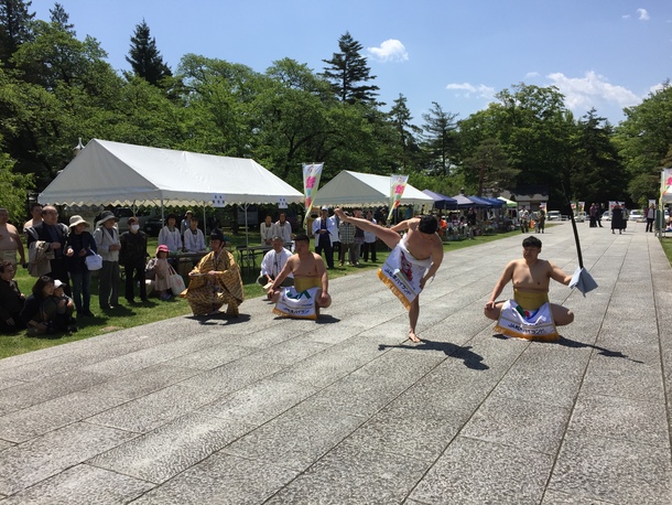 境内には、地元の社会人相撲部やフリーマーケットも出ていただき大変賑やかに。相撲部の土俵入りには、大きな拍手があがりましたが、そんなときには鳥居がないとちょっと寂しいなと感じました。