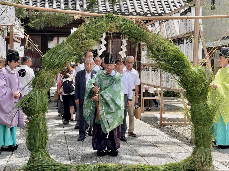 本日7月19日は鳥飼八幡宮の夏季大祭・夏越祭を行い、神事の後で令和6年度、奉賛をいただいた方々のお名前を刻んだ銘板の除幕式を行いました。