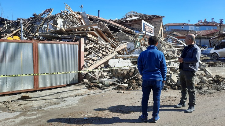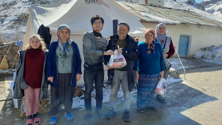 物資配布の第一弾として、マラティア県のある村を支援しました。地震ですごい揺れが襲ったそうで、残念ながらほとんどの家が倒壊か損傷したそうです。まだまだ雪が残る極寒の村に食糧30箱・衛星用品40セット・ストーブ30台・薪2トン・テント4セット・オムツ50パックを渡しました。