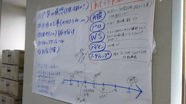 プロに任せないとできない工事、自分達で出来る所、ワークショップ形式にする所と役割分担をして、