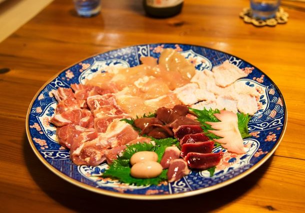 もも肉、むね肉、ササミ、皮、トサカ、砂肝、ホルモン