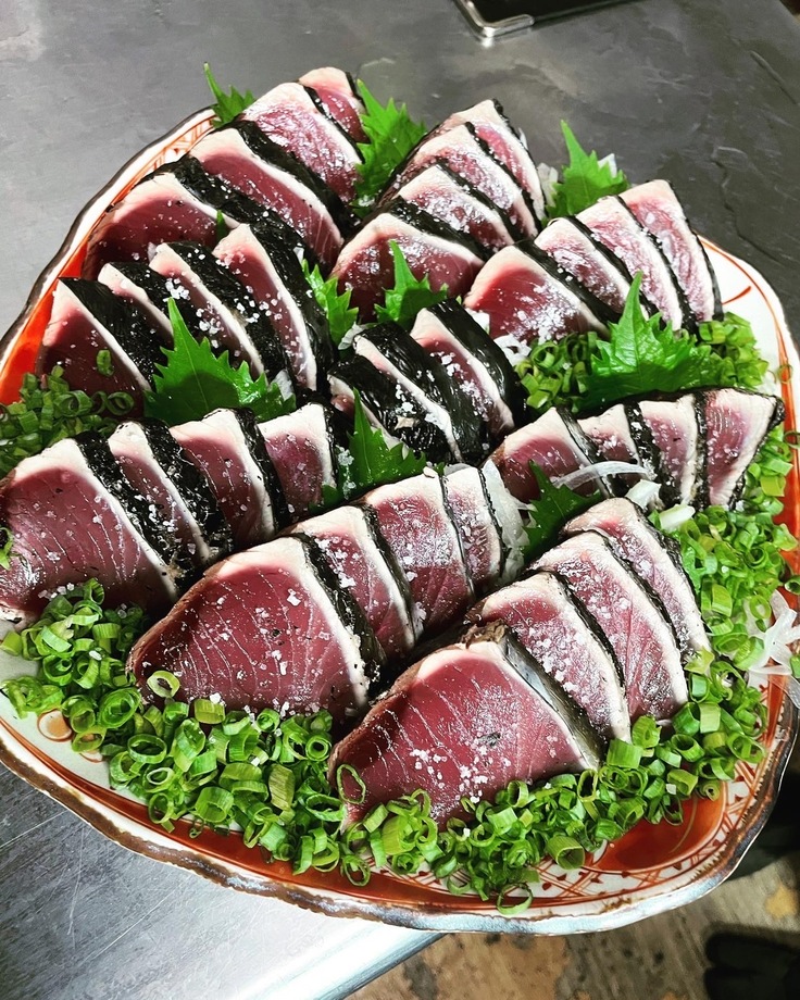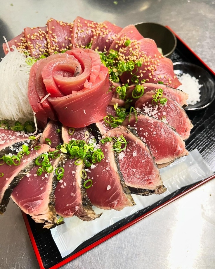 元カツオ漁師の店主・山下敬二さんの営む鮮魚一八さんは、「とにかく美味しいカツオを食べてもらいたい」をポリシーとして、カツオのたたきの全国発送と、土佐清水を訪れた方に捌きたて・焼きたてのたたきを提供するべく、店内飲食を行っています。