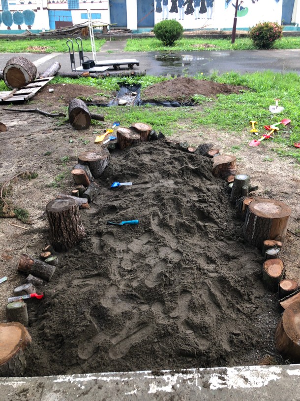 砂場、第3弾!1年生、自分で作った砂場でついに遊びました!