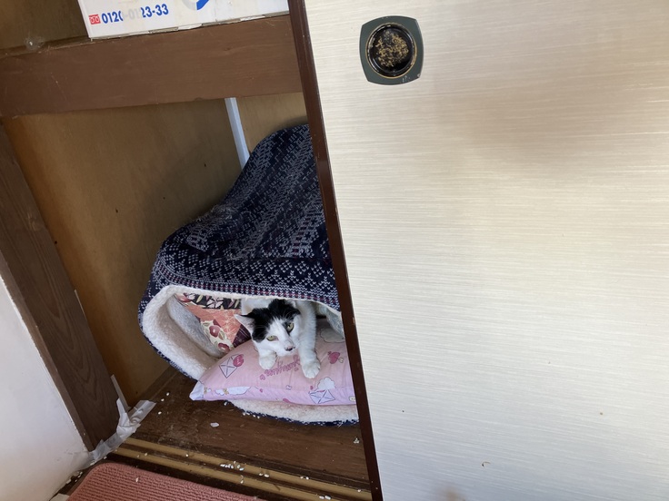 どちらも高齢で、住まいが取り壊しになった方で、それぞれ5匹の猫ちゃんと暮らしています。