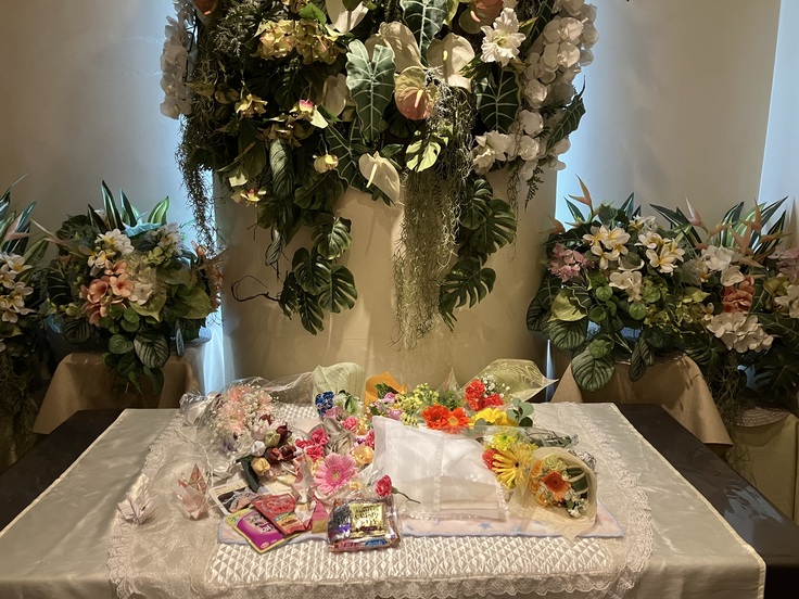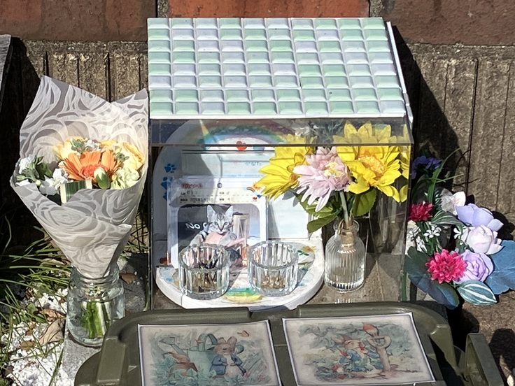ボランティアさんから頂いたたくさんのお花に包まれて、お空に帰りました。