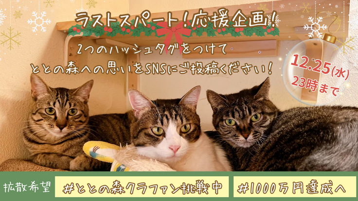 SNSのアカウントをお持ちの皆様、ぜひクリスマスまで力を貸してください。皆様と一緒に最高のラストを迎えられたらとと思っております。