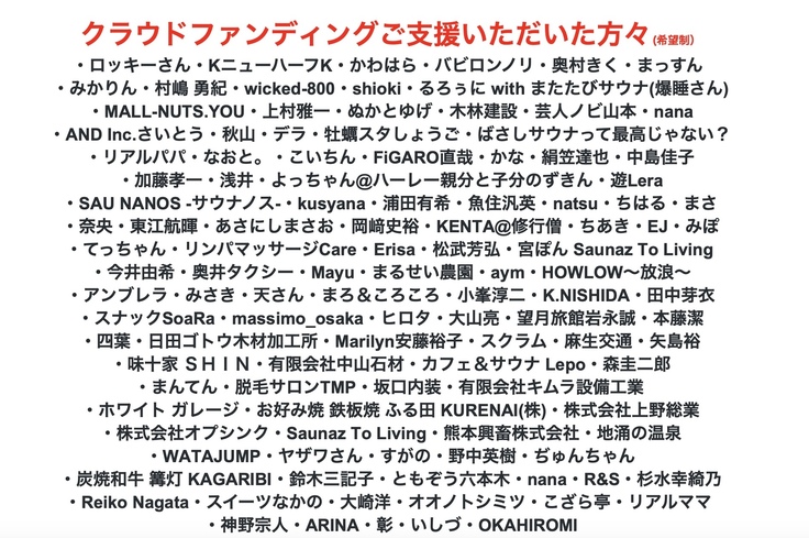 今回のクラウドファンディングにご支援いただいた方々のお名前をHPに掲載させていただきました✨