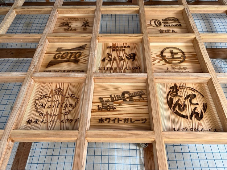 しかも天井にはクラウドファンディングでご支援いただいた企業様のロゴを天井板として取り付けるリターンがありまして、今回20枠ご支援いただいたので取り付けていきます!