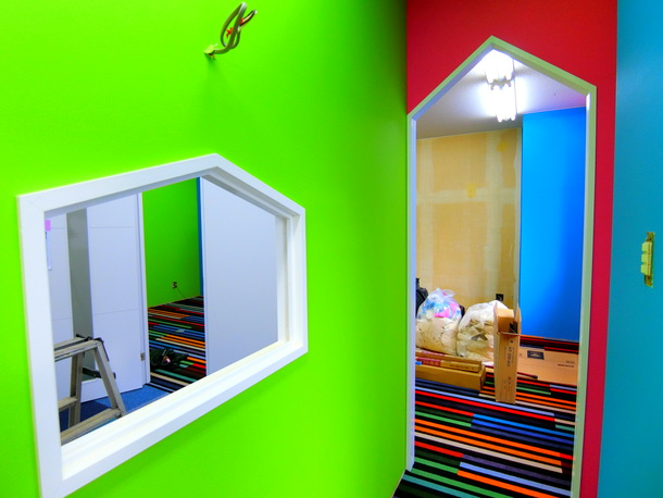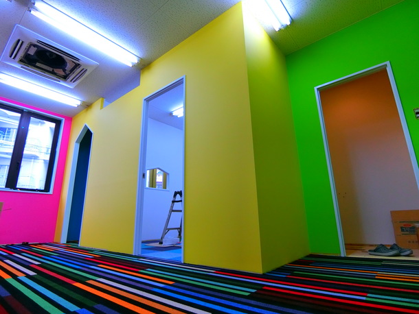 最初は壁の無いところに壁をつくって事務室をつくっていく工程からはじまり、