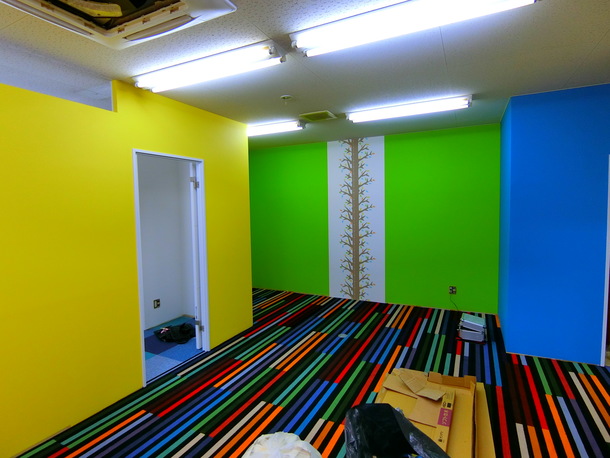 壁紙を貼り直し、そして床タイルカーペットへと着々と進んでいく様子が何とも言い難い、本当に何かが生まれだしたような感覚でしょうか^^