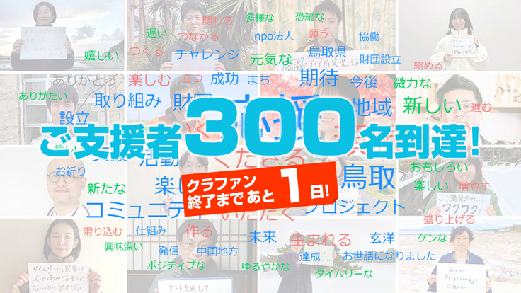 チャレンジも、あと本日と明日を残すのみとなりました。とっとりのコミュニティ財団設立後第一弾となる若者チャレンジ助成プログラム『とりまね』で、たくさんの若者を応援できるよう、最後の最後まで、ご支援・応援をどうぞよろしくお願いします。