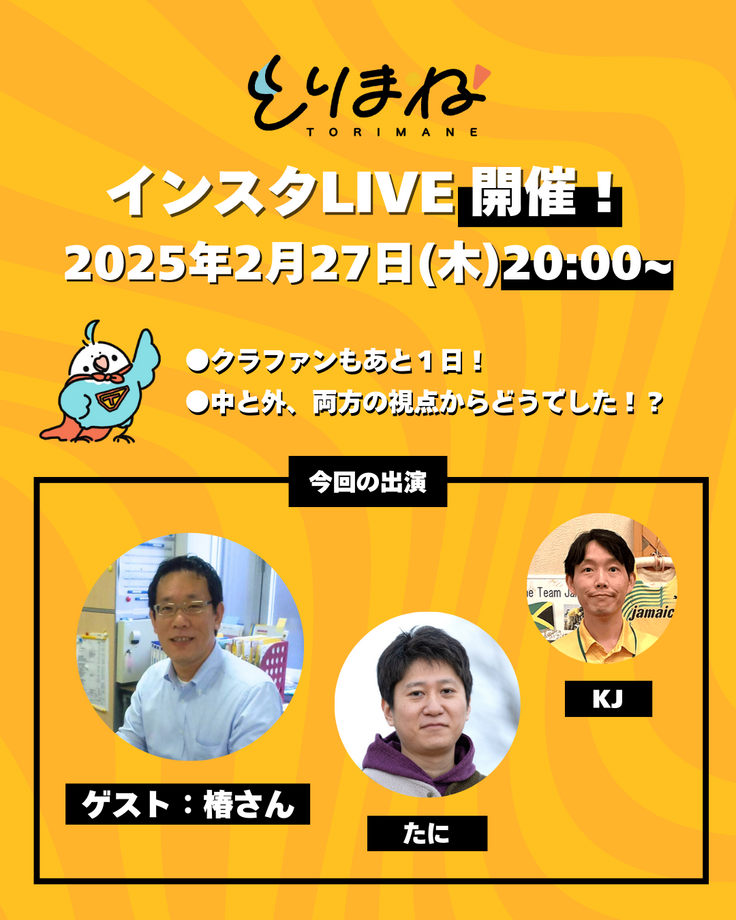 本日・2/27(木)も三夜連続インスタLIVE!ゲストは中間支援組織の椿さん&聞き手たに!