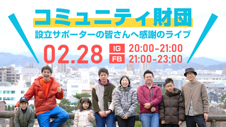 三夜連続インスタLIVEの締めくくりとして、クラファン終了を前に、設立サポーターの皆さんお一人おひとりに感謝を伝えるライブをお届けします。なお、インスタLIVEは1時間の時間制限があることから、Facebook LIVEとの二本立てで開催します。