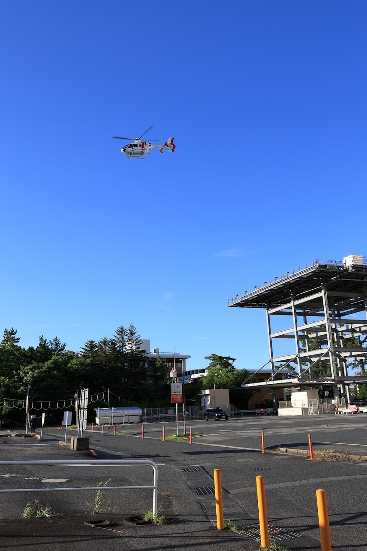 夕方になり、ドクターヘリが基地へ帰って行きました。