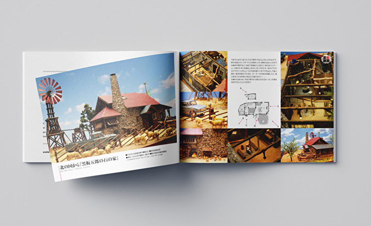 先日のテレビニュースで紹介された作品、TVドラマ・北の国からの「黒板五郎の石の家」です。画像はイメージですが、すべてのミニチュア作品の写真とその製作風景、想像した間取り図、製作にあたっての思いなどが掲載されます。この作品集の発行にあたっては、プロカメラマン、コピーライター&グラフィックデザイナー、CADオペレーターなど、本格的なプロ集団の手によって作られます。書店やネット流通はしない作品集です。