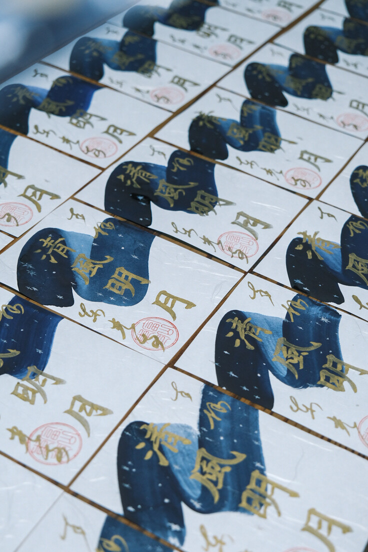 月見茶会「禅とアート」もとりあえずひと段落したということで、返礼品の準備をしております。まずは御朱印から一枚一枚丹精込めて書いております。この御朱印に書かれた言葉は「清風明月」という禅語。秋は月が美しいのでこの言葉を選びました。「清風」はさわやかですがすがしい風、「明月」は明るく澄みきった月の意。この言葉は一つも曇り(煩悩)がない清々しさ心を指します。こういっているそばから煩悩まみれの投稿者ですが、一瞬だけ煩悩がなくなる瞬間があります。それは秋風を感じながら美しい月を見るとき。皆さんも自然の美しさに邪念が払われることはないでしょうか。この御朱印をみて美しい月夜が想像されますと幸いです。