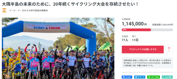 このプロジェクトを達成することができれば、私たちサイクルツーリズムの発展とともに、大隅地域の観光を中心とした地域活性化に繋がると考えております。