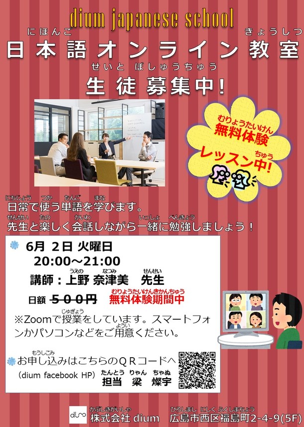 外国への行き来が出来ないため、日本語オンライン教室をやり続けております。