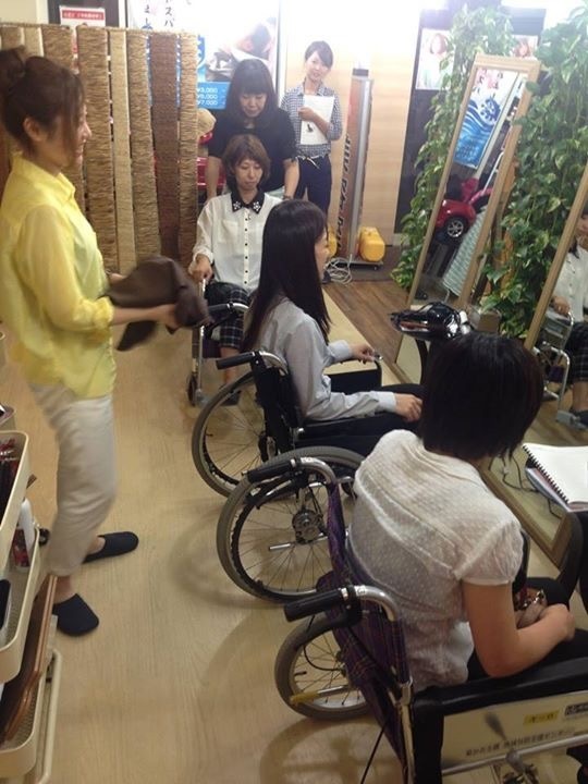 それぞれ相モデルで車椅子に乗ってカット体験!
