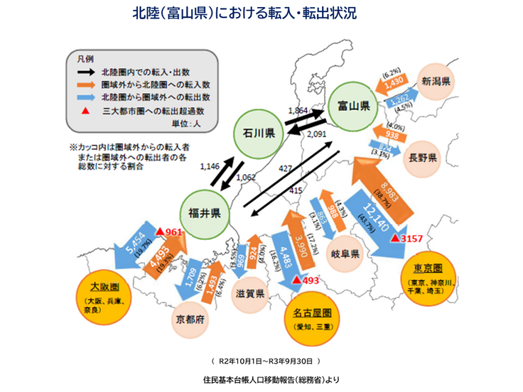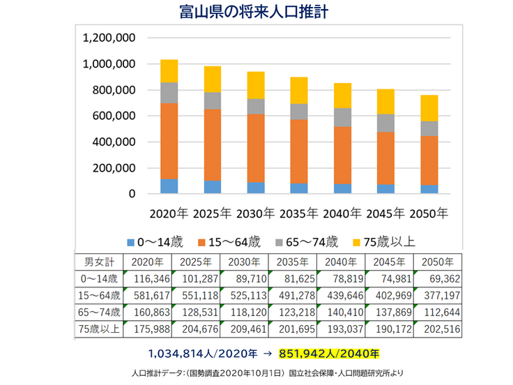一方で、少子化や若年者の都市部への転出超過により、富山の医療を担う若い人は減っています。
