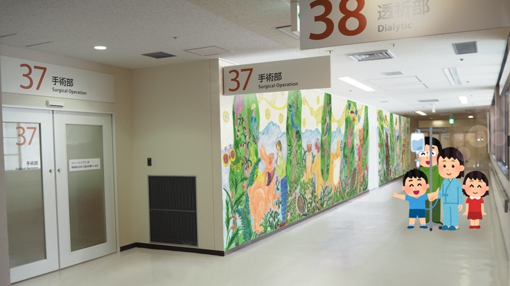 いやー、素晴らしい取り組みですねー。私自身お見舞いに伺ったり人間ドックに行く際にどんどんいろいろ考え不安になっていった経験があります。ふっと心が和む明るい絵を見るだけで精神的に助かりそうです。皆さま、いつ我々自身、家族、仲間がお世話になるかもしれませんので、みんなでこの取り組みを応援しましょう。