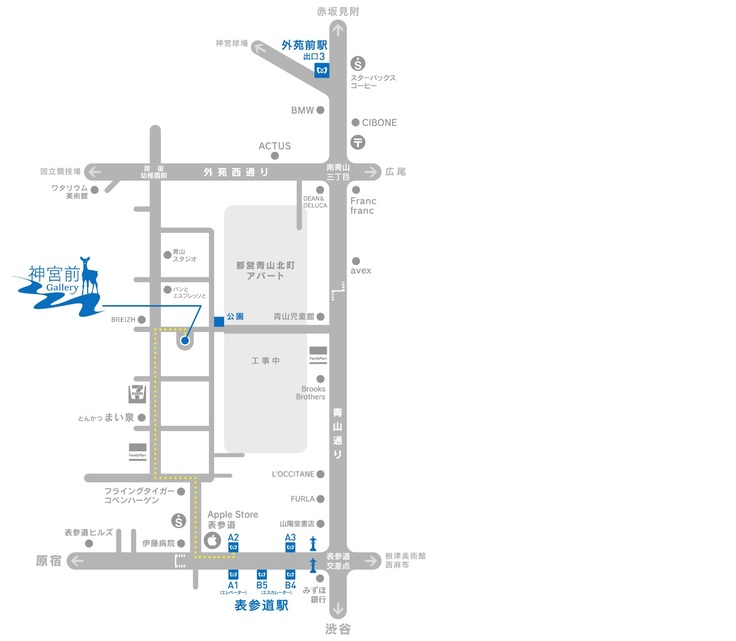 東京メトロ 銀座線・半蔵門線・千代田線 「表参道」駅 出口A2・A3より徒歩5分