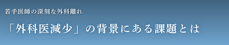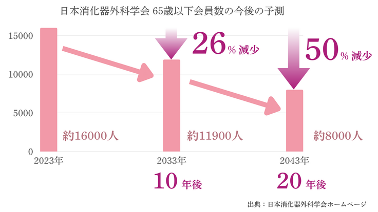 消化器外科医の急速な減少は、日本全体における深刻な問題です。このままでは近い将来、「がんになっても手術をする医師がいない」という事態になる、とも予測されています。