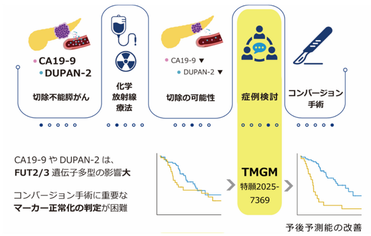膵臓がんは進行した状態で診断されることが多く、生存率の低いがんのひとつです。治療には抗がん剤や放射線治療に加えて、適切な時期に手術することが重要です。手術の可否の判断には腫瘍マーカーが参考になりますが、その個人差が課題でした。富山大学と名古屋大学の研究グループは、腫瘍マーカーと遺伝子タイプの組み合わせがよい指標となり得ることを発見しました。