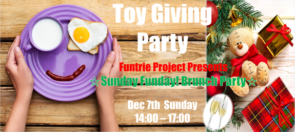 今回Funtrie Project初めてとなるイベント、「Toy Giving Party」を12月7日(日)に開催します。来場者の方には、新品または未開封のおもちゃをご持参頂き、集めたおもちゃを全国のがんと闘病している子供たちへ配送し、届けます。普通の生活をできない中でも、プレゼントをもらうワクワク感はきっとあるはずです。クリスマスプレゼント贈ることによって、全国の病気と戦う子供たちに少しでも元気になってもらいたいと思っています。