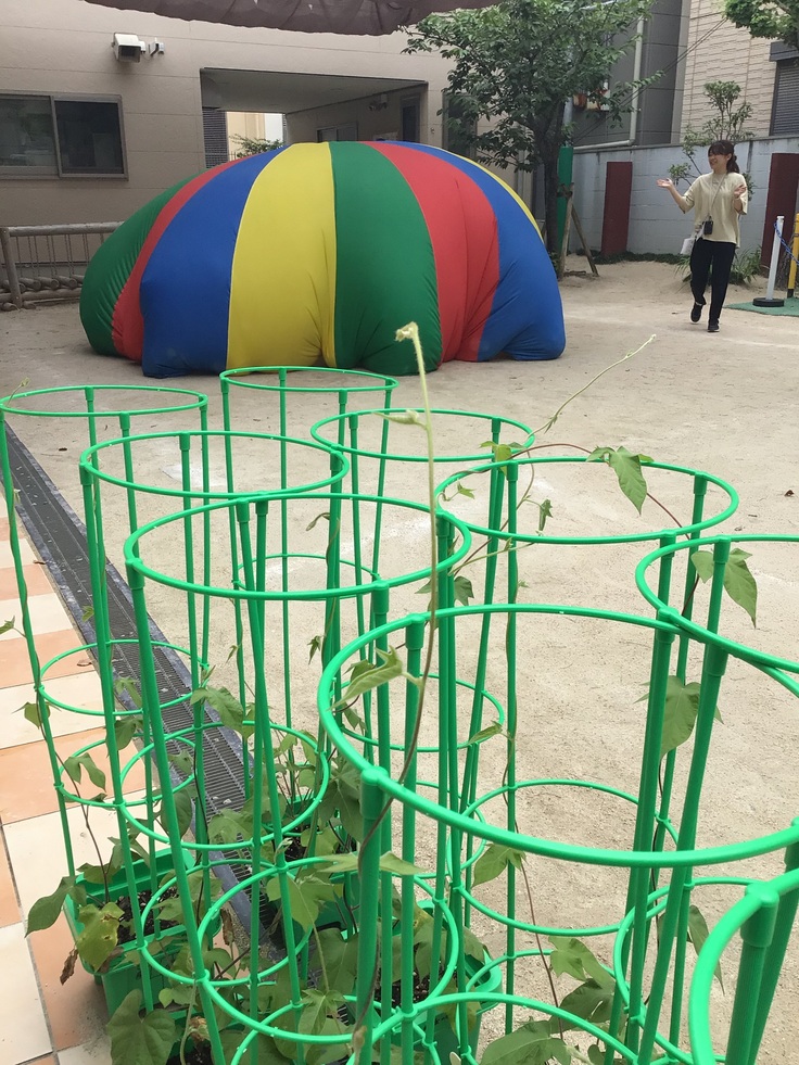 (毎年、こどもたちが育てている朝顔、5月初旬に種を蒔き、6月の頃の生長した様子です。