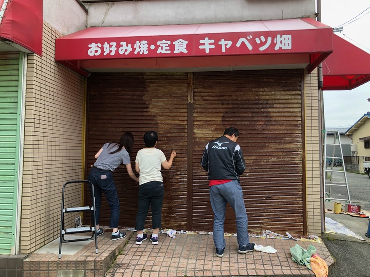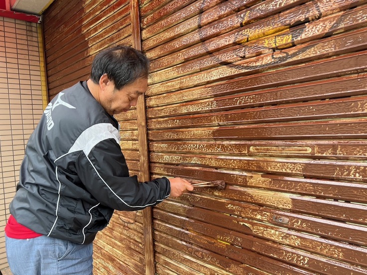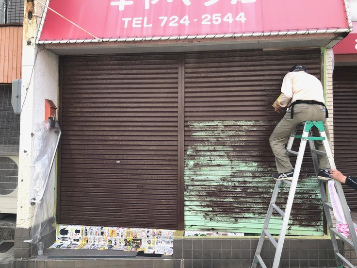 虹のうつわ店舗のシャッターに下塗りをしていましたが、