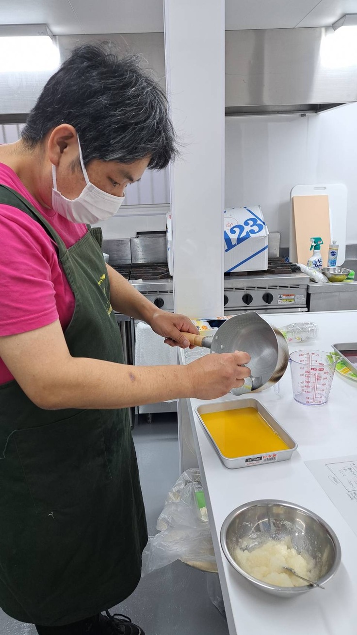 山口さんは、まず手始めに、ゼリーの試作練習です。