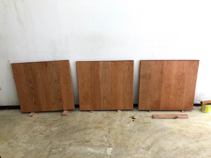 塗り終わった天板は、しっかり乾かし、脚の取り付けまで、寝かします。