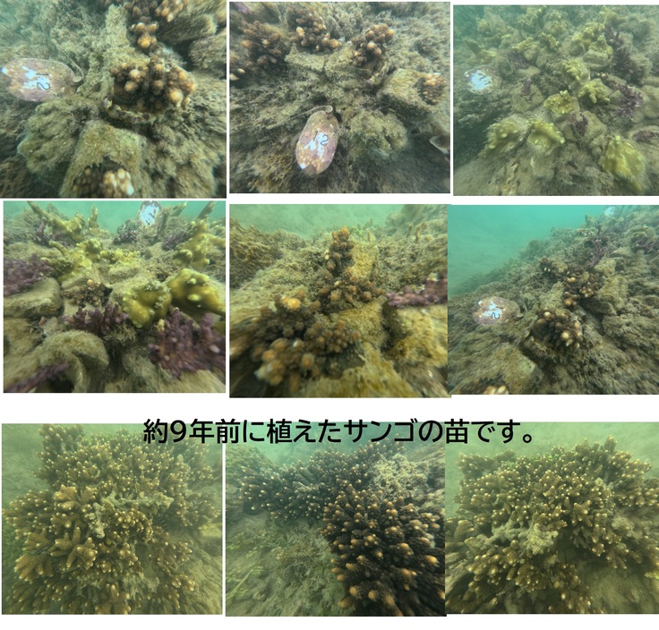 映像の最初に映っているのは約9年前に植えたサンゴの苗が