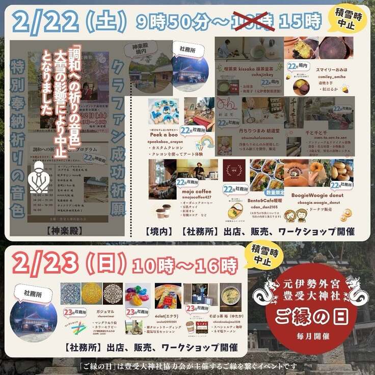 本日は、明日2月22日・明後日2月23日に開催予定の元伊勢外宮豊受大神社「ご縁の日」のご案内です。