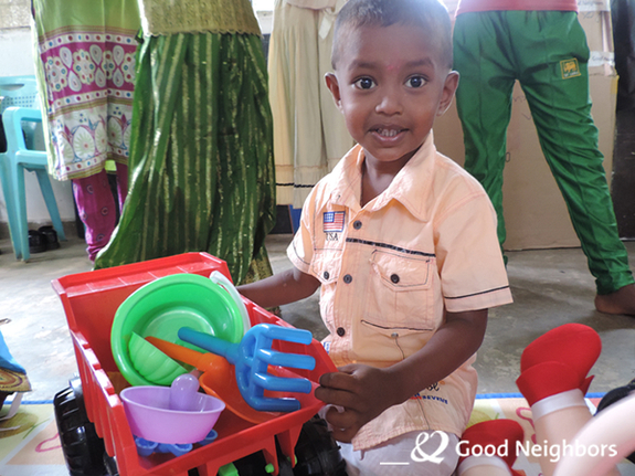 今まで見たことのないようなおもちゃに子どもたちは大喜び。かわいい子どもたちの喜ぶ顔をみて、このプロジェクトを実施できてよかったと心から思いました。