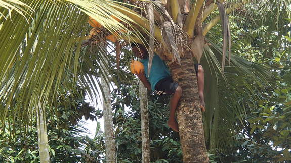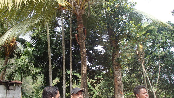 私が山を登ったところにあるタミル民族の村を訪れたとき、ある大人が少年に向かって何か言いました。するとその少年は走って木を登り・・