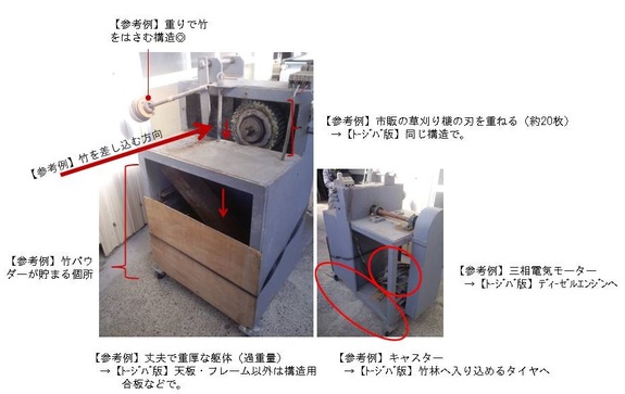 ローコストで標準化され、家庭からの廃油で動かす「竹パウダー製造機」を開発します!