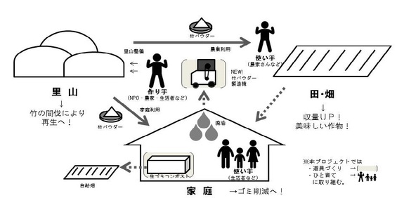(竹パウダーの暮らし活用による里山とヒトとの新たな関係性のイメージ)