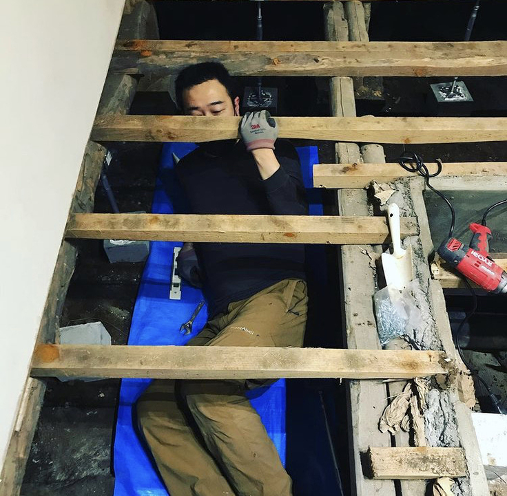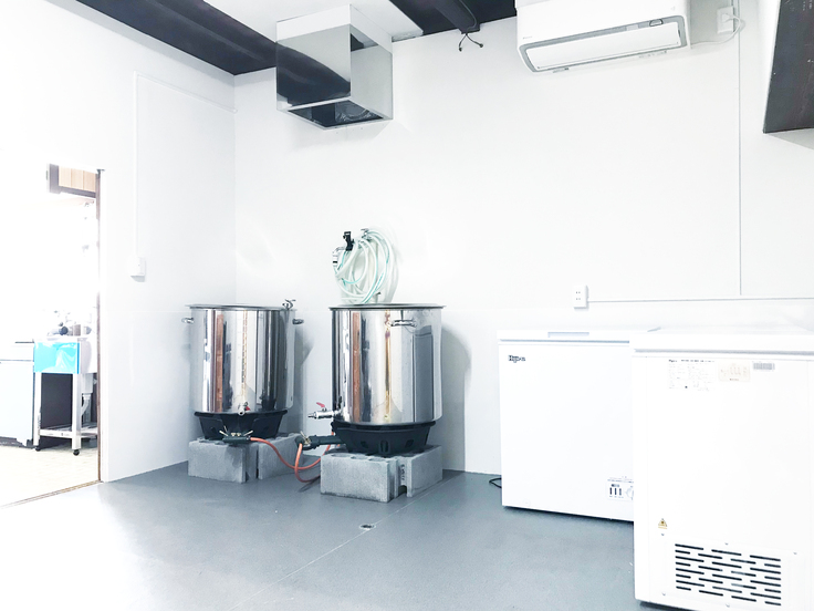 醸造所開設にかかるコストを抑えるため、SPRING GALLERYの一部分を改修し醸造所として使用することにしました。日本では最小規模の醸造所です。町の設備屋さんや電気屋さん、ガス屋さんたち職人さんに助けられながら、半DIYで工事を進めました。